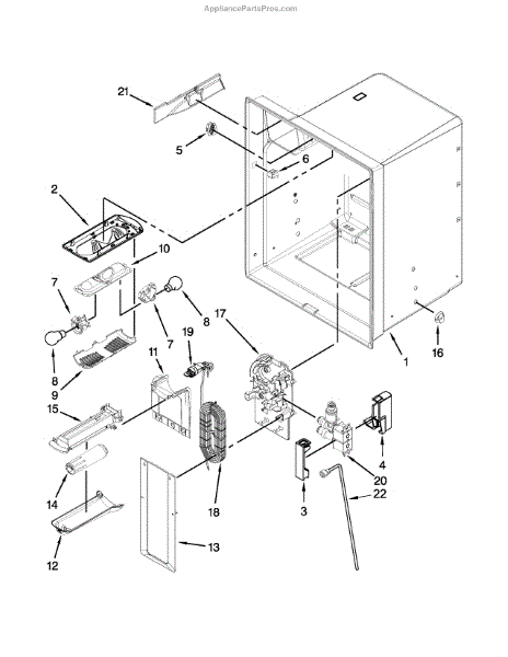 Outer cabinet housing for bottom-mount refrigerators. Supports and protects internal components. Replace when cracked, bent, or damaged to restore alignment.