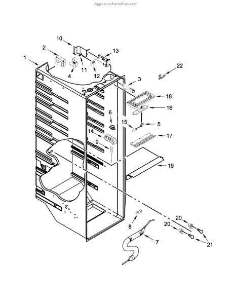 The Water Filter Housing is an OEM part for Whirlpool refrigerators. This part securely holds the water filter in place, ensuring proper water filtration and flow to the dispenser or ice maker.