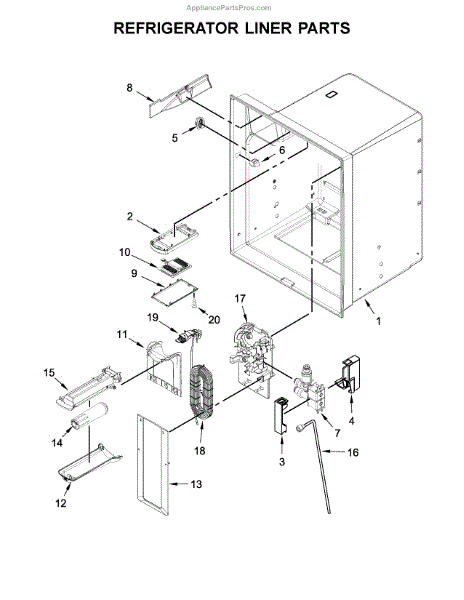 The Reservoir is a Whirlpool OEM replacement part for Whirlpool side-by-side refrigerators. This assembly does include the filter head. The filter head connects the external filter cartridge to the internal reservoir. The reservoir holds filtered water that is dispensed from the external door dispenser. Causes can be normal wear to sealing components, cracks in plastic from repeated pressure changes, or mineral buildup affecting water flow. Symptoms of a problem include: