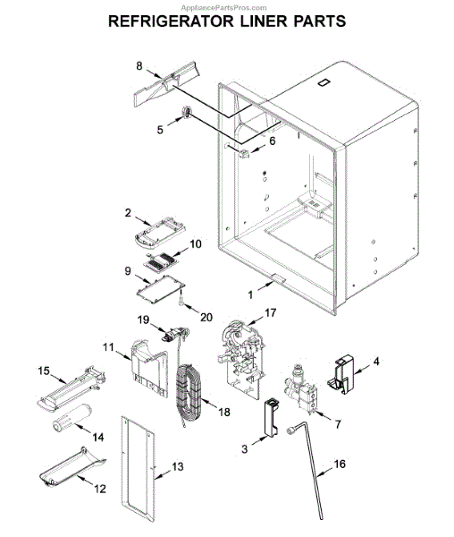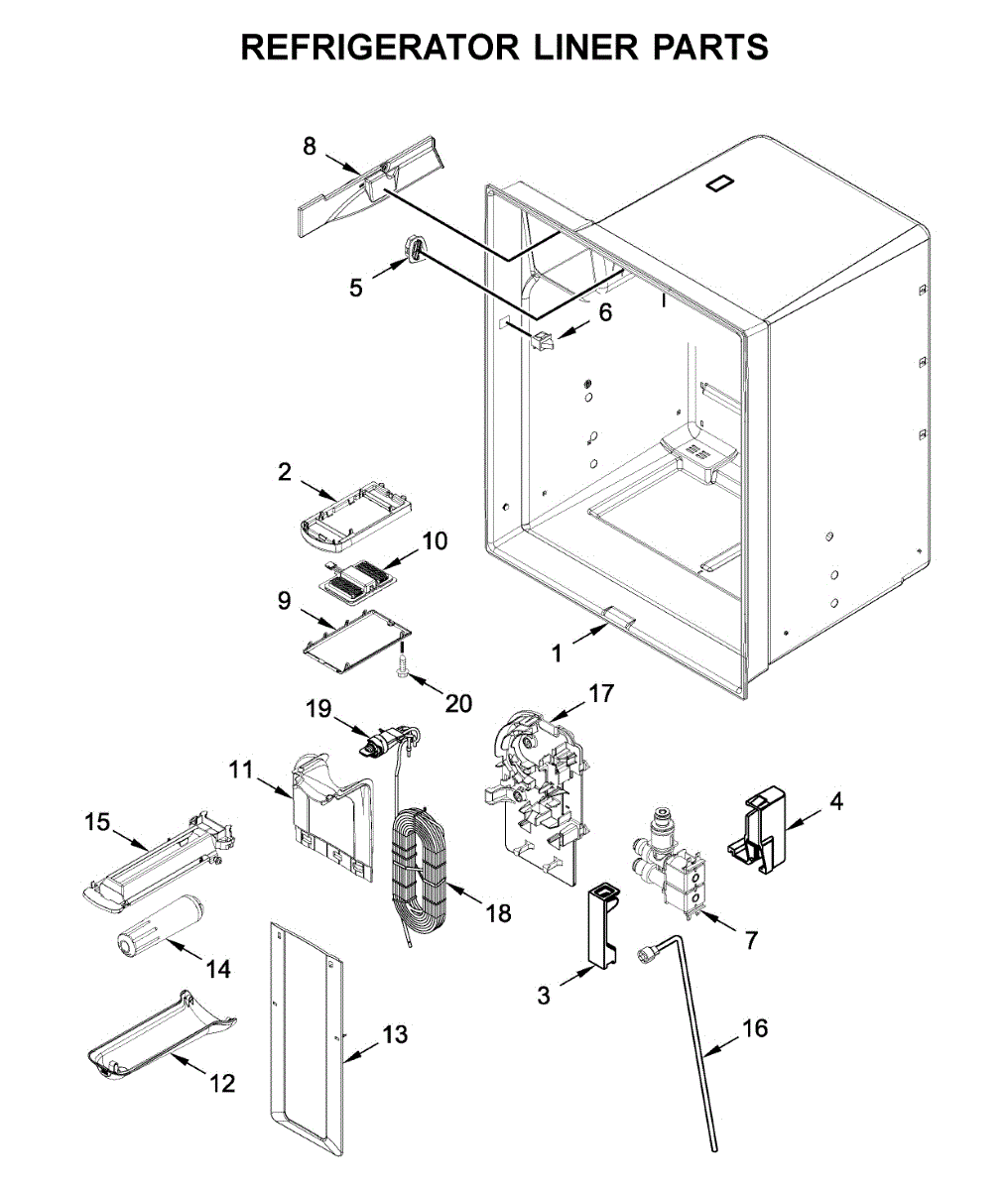 The Reservoir is a Whirlpool OEM replacement part for Whirlpool side-by-side refrigerators. This assembly does include the filter head. The filter head connects the external filter cartridge to the internal reservoir. The reservoir holds filtered water that is dispensed from the external door dispenser. Causes can be normal wear to sealing components, cracks in plastic from repeated pressure changes, or mineral buildup affecting water flow. Symptoms of a problem include: