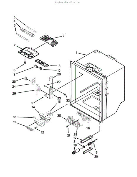 Plastic housing assembly that encloses and supports ice maker components in your refrigerator. Replace if cracked, broken, or damaged from impact.