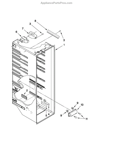 The Air Diffuser Assembly is an OEM part for Whirlpool refrigerators. It regulates the airflow between the refrigerator and freezer compartments, ensuring the proper distribution of cold air to maintain the desired temperatures in both sections.