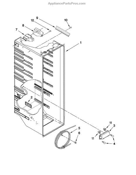 The Air Diffuser Assembly is an OEM part for Whirlpool refrigerators. It regulates the airflow between the refrigerator and freezer compartments, ensuring the proper distribution of cold air to maintain the desired temperatures in both sections.