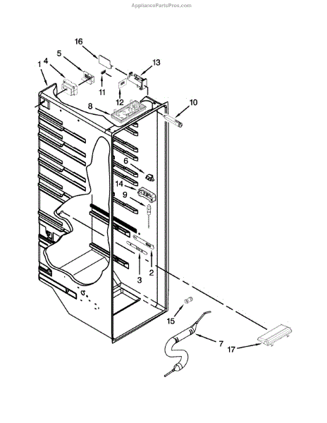 The Air Diffuser is an OEM component for Whirlpool refrigerators. Located inside the refrigerator compartment, it distributes cold air evenly to all storage shelves and ensures balanced temperatures throughout the space. Causes of a bad air diffuser can include cracks in the plastic housing from years of fluctuating temperatures or jammed louvers obstructing optimal circulation patterns. Symptoms of a bad air diffuser include:
