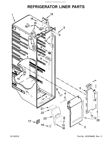 This housing is a replacement cabinet panel that restores the appliance's structural support and protects internal components from damage. It helps return the unit to proper fit and finish after dents, cracks, or broken mounting points. What it does: