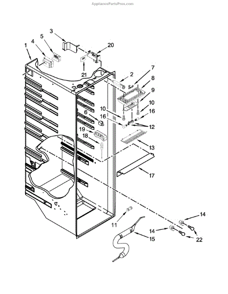 The Air Diffuser is an OEM component for Whirlpool refrigerators. Located inside the refrigerator compartment, it distributes cold air evenly to all storage shelves and ensures balanced temperatures throughout the space. Causes of a bad air diffuser can include cracks in the plastic housing from years of fluctuating temperatures or jammed louvers obstructing optimal circulation patterns. Symptoms of a bad air diffuser include: