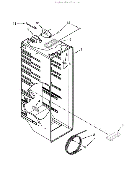 The Air Diffuser Assembly is an OEM part for Whirlpool refrigerators. It regulates the airflow between the refrigerator and freezer compartments, ensuring the proper distribution of cold air to maintain the desired temperatures in both sections.