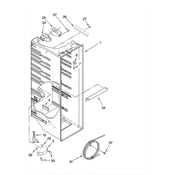 The Air Diffuser Assembly is an OEM part for Whirlpool refrigerators. It regulates the airflow between the refrigerator and freezer compartments, ensuring the proper distribution of cold air to maintain the desired temperatures in both sections.