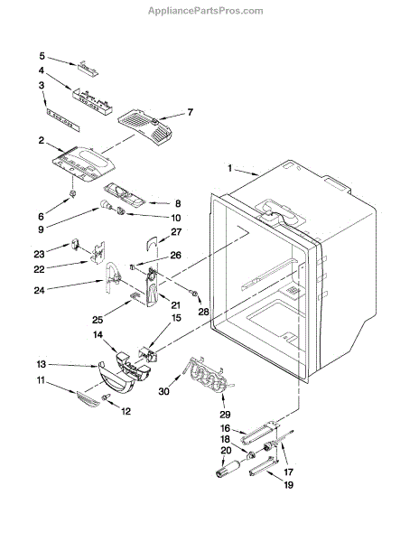 This dispenser facade replaces the outer trim pieces around your refrigerator's ice and water dispenser, restoring appearance and proper fit for smooth operation and sealing. It's a direct-fit cosmetic and protective assembly. What it does: