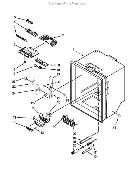 This refrigerator water reservoir stores a small volume of water in the fresh food compartment so the dispenser delivers a steady, chilled flow. Replace a cracked or leaking tank to stop interior leaks and restore normal dispensing performance. What it does: