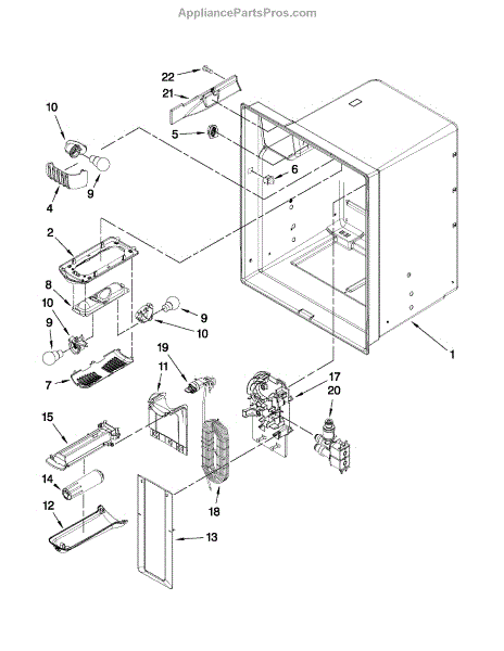 The Reservoir is a Whirlpool OEM replacement part for Whirlpool side-by-side refrigerators. This assembly does include the filter head. The filter head connects the external filter cartridge to the internal reservoir. The reservoir holds filtered water that is dispensed from the external door dispenser. Causes can be normal wear to sealing components, cracks in plastic from repeated pressure changes, or mineral buildup affecting water flow. Symptoms of a problem include:
