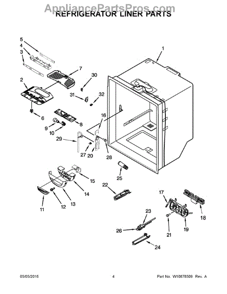 This refrigerator water reservoir stores a small volume of water in the fresh food compartment so the dispenser delivers a steady, chilled flow. Replace a cracked or leaking tank to stop interior leaks and restore normal dispensing performance. What it does: