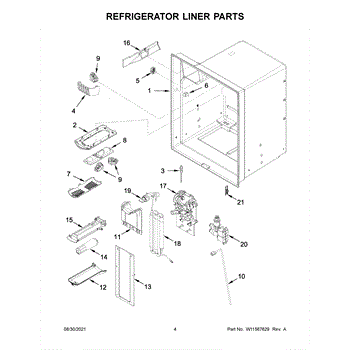 The Reservoir is a Whirlpool OEM replacement part for Whirlpool side-by-side refrigerators. This assembly does include the filter head. The filter head connects the external filter cartridge to the internal reservoir. The reservoir holds filtered water that is dispensed from the external door dispenser. Causes can be normal wear to sealing components, cracks in plastic from repeated pressure changes, or mineral buildup affecting water flow. Symptoms of a problem include: