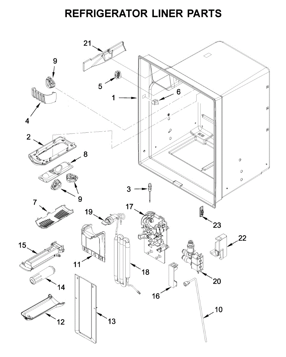 The Reservoir is a Whirlpool OEM replacement part for Whirlpool side-by-side refrigerators. This assembly does include the filter head. The filter head connects the external filter cartridge to the internal reservoir. The reservoir holds filtered water that is dispensed from the external door dispenser. Causes can be normal wear to sealing components, cracks in plastic from repeated pressure changes, or mineral buildup affecting water flow. Symptoms of a problem include: