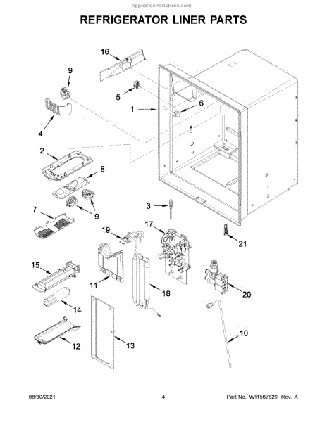The Reservoir is a Whirlpool OEM replacement part for Whirlpool side-by-side refrigerators. This assembly does include the filter head. The filter head connects the external filter cartridge to the internal reservoir. The reservoir holds filtered water that is dispensed from the external door dispenser. Causes can be normal wear to sealing components, cracks in plastic from repeated pressure changes, or mineral buildup affecting water flow. Symptoms of a problem include: