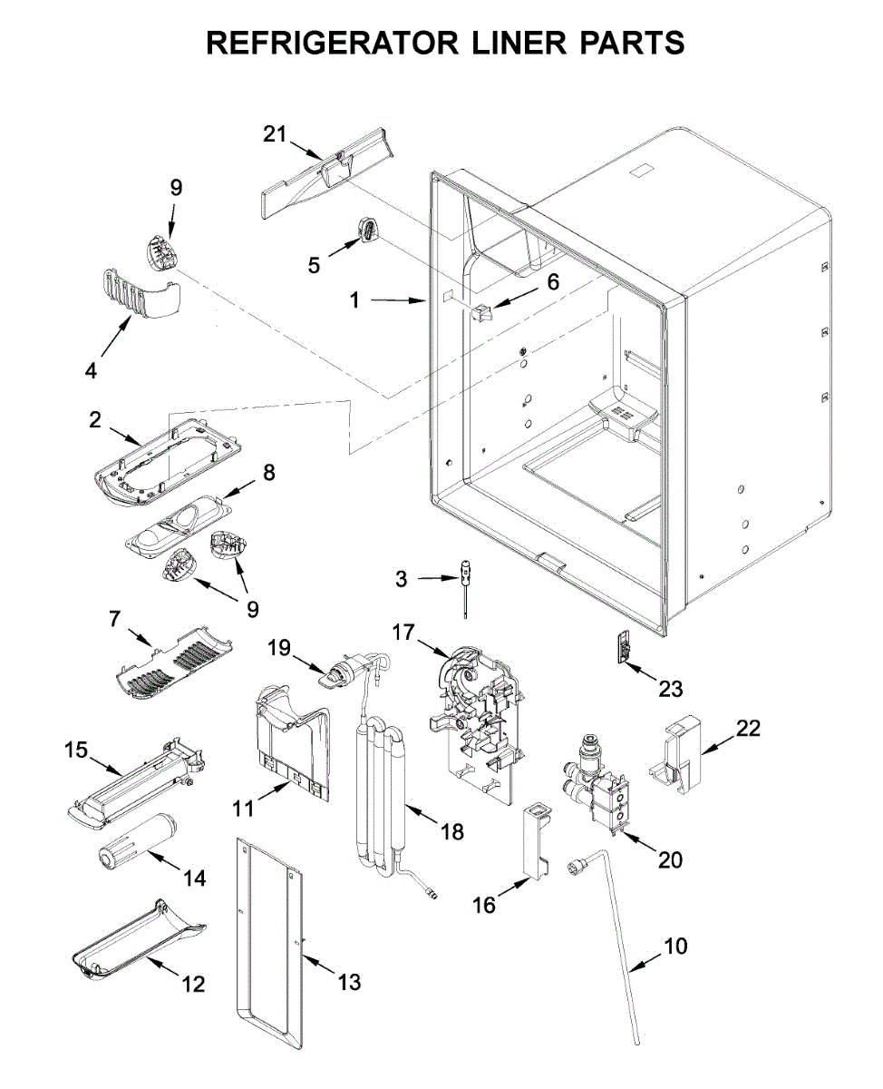 The Reservoir is a Whirlpool OEM replacement part for Whirlpool side-by-side refrigerators. This assembly does include the filter head. The filter head connects the external filter cartridge to the internal reservoir. The reservoir holds filtered water that is dispensed from the external door dispenser. Causes can be normal wear to sealing components, cracks in plastic from repeated pressure changes, or mineral buildup affecting water flow. Symptoms of a problem include: