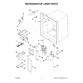 The Reservoir is a Whirlpool OEM replacement part for Whirlpool side-by-side refrigerators. This assembly does include the filter head. The filter head connects the external filter cartridge to the internal reservoir. The reservoir holds filtered water that is dispensed from the external door dispenser. Causes can be normal wear to sealing components, cracks in plastic from repeated pressure changes, or mineral buildup affecting water flow. Symptoms of a problem include: