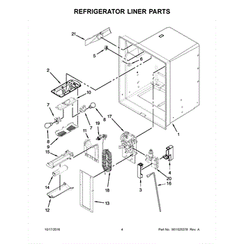 The Reservoir is a Whirlpool OEM replacement part for Whirlpool side-by-side refrigerators. This assembly does include the filter head. The filter head connects the external filter cartridge to the internal reservoir. The reservoir holds filtered water that is dispensed from the external door dispenser. Causes can be normal wear to sealing components, cracks in plastic from repeated pressure changes, or mineral buildup affecting water flow. Symptoms of a problem include: