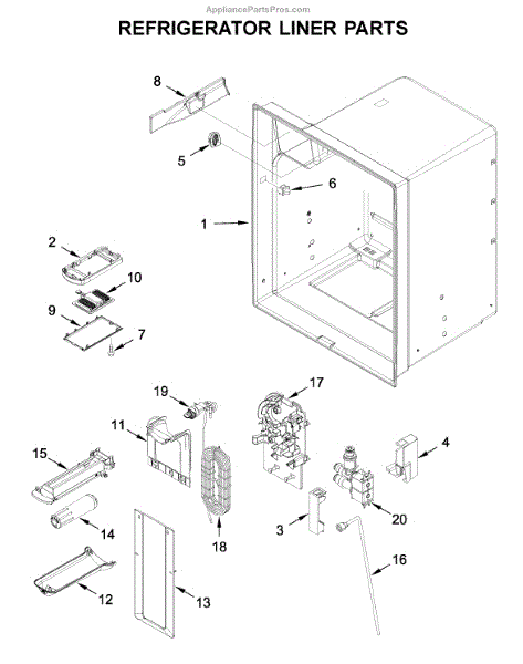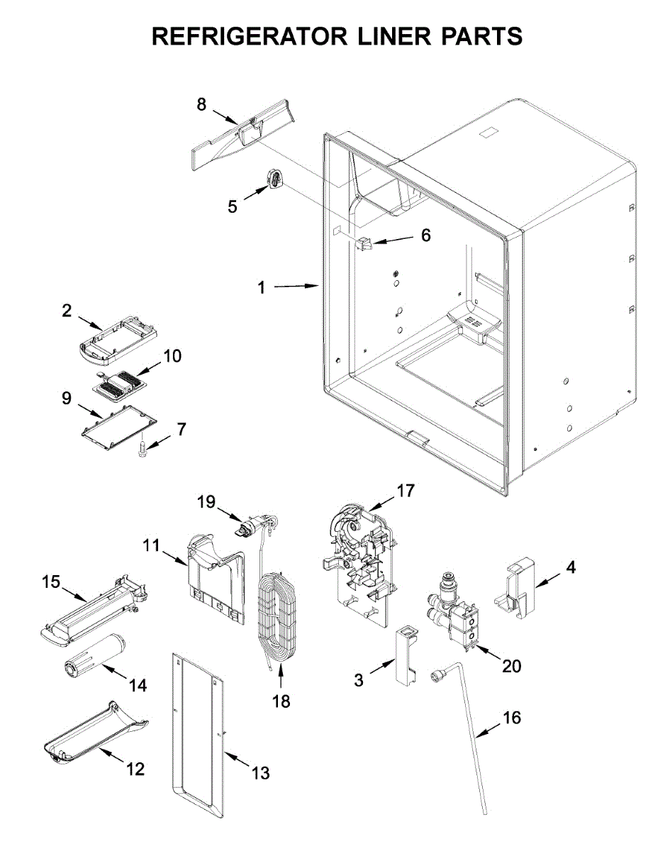 The Reservoir is a Whirlpool OEM replacement part for Whirlpool side-by-side refrigerators. This assembly does include the filter head. The filter head connects the external filter cartridge to the internal reservoir. The reservoir holds filtered water that is dispensed from the external door dispenser. Causes can be normal wear to sealing components, cracks in plastic from repeated pressure changes, or mineral buildup affecting water flow. Symptoms of a problem include: