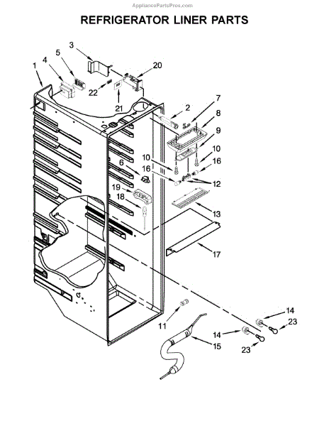 The Water Filter Housing is an OEM part for Whirlpool refrigerators. This part securely holds the water filter in place, ensuring proper water filtration and flow to the dispenser or ice maker.