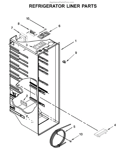 Outer cabinet housing that provides structural support and protection for internal refrigerator components. Replace if cracked, damaged, or warped.