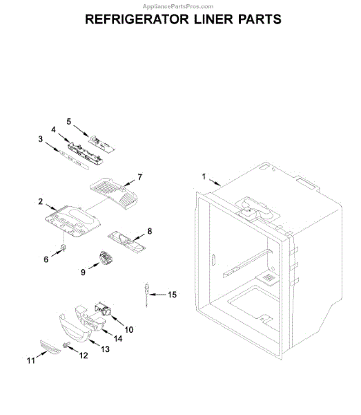 Outer cabinet housing for bottom-mount refrigerators. Supports and protects internal components. Replace when cracked, bent, or damaged to restore alignment.