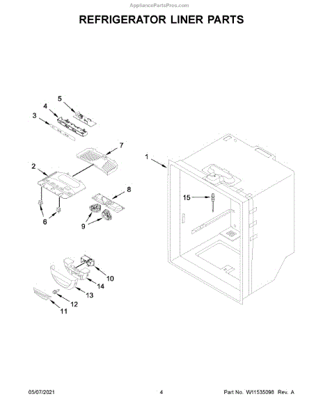 Outer cabinet housing for bottom-mount refrigerators. Supports and protects internal components. Replace when cracked, bent, or damaged to restore alignment.