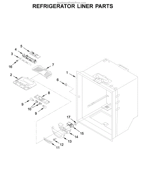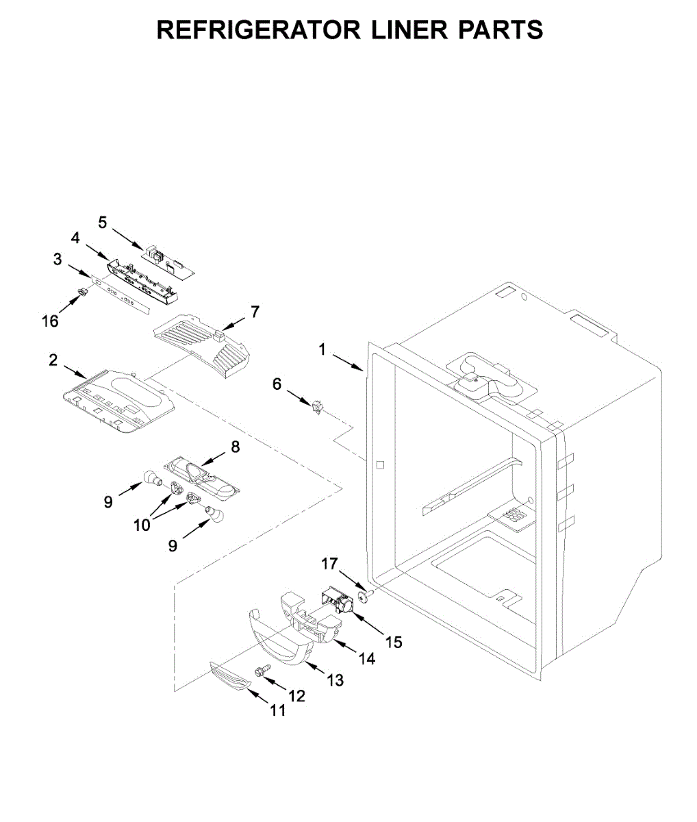 Outer cabinet housing for bottom-mount refrigerators. Supports and protects internal components. Replace when cracked, bent, or damaged to restore alignment.