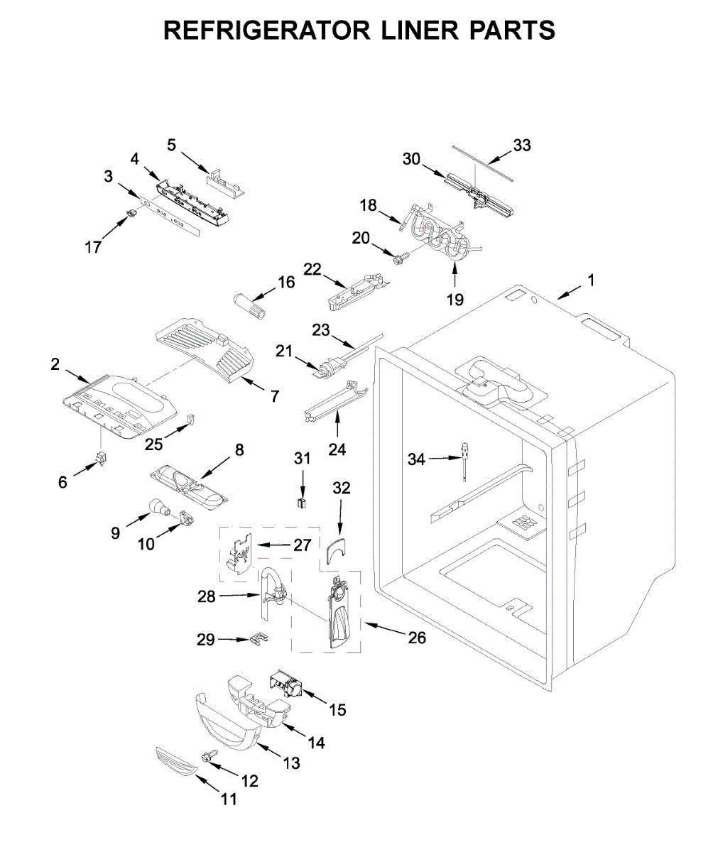This refrigerator water reservoir stores a small volume of water in the fresh food compartment so the dispenser delivers a steady, chilled flow. Replace a cracked or leaking tank to stop interior leaks and restore normal dispensing performance. What it does: