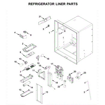 Outer cabinet housing for bottom-mount refrigerators. Supports and protects internal components. Replace when cracked, bent, or damaged to restore alignment.