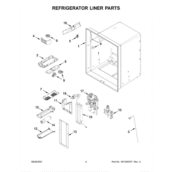 The Reservoir is a Whirlpool OEM replacement part for Whirlpool side-by-side refrigerators. This assembly does include the filter head. The filter head connects the external filter cartridge to the internal reservoir. The reservoir holds filtered water that is dispensed from the external door dispenser. Causes can be normal wear to sealing components, cracks in plastic from repeated pressure changes, or mineral buildup affecting water flow. Symptoms of a problem include:
