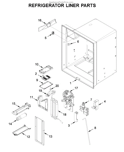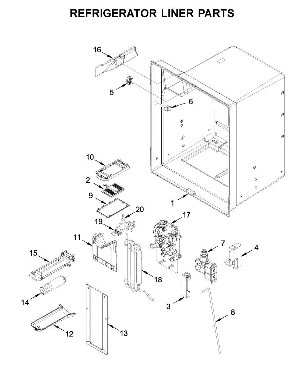 The Reservoir is a Whirlpool OEM replacement part for Whirlpool side-by-side refrigerators. This assembly does include the filter head. The filter head connects the external filter cartridge to the internal reservoir. The reservoir holds filtered water that is dispensed from the external door dispenser. Causes can be normal wear to sealing components, cracks in plastic from repeated pressure changes, or mineral buildup affecting water flow. Symptoms of a problem include: