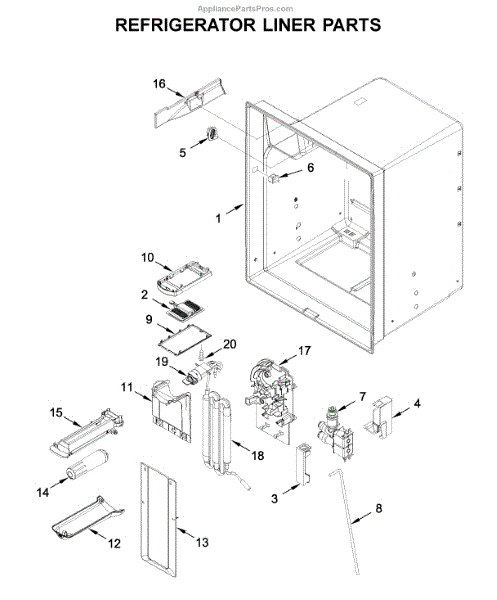 The Reservoir is a Whirlpool OEM replacement part for Whirlpool side-by-side refrigerators. This assembly does include the filter head. The filter head connects the external filter cartridge to the internal reservoir. The reservoir holds filtered water that is dispensed from the external door dispenser. Causes can be normal wear to sealing components, cracks in plastic from repeated pressure changes, or mineral buildup affecting water flow. Symptoms of a problem include: