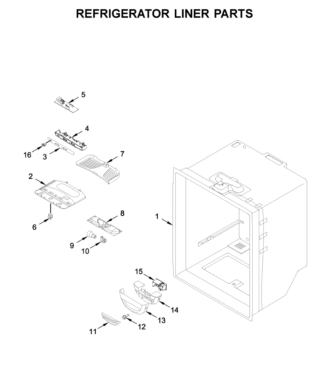 Outer cabinet housing for bottom-mount refrigerators. Supports and protects internal components. Replace when cracked, bent, or damaged to restore alignment.