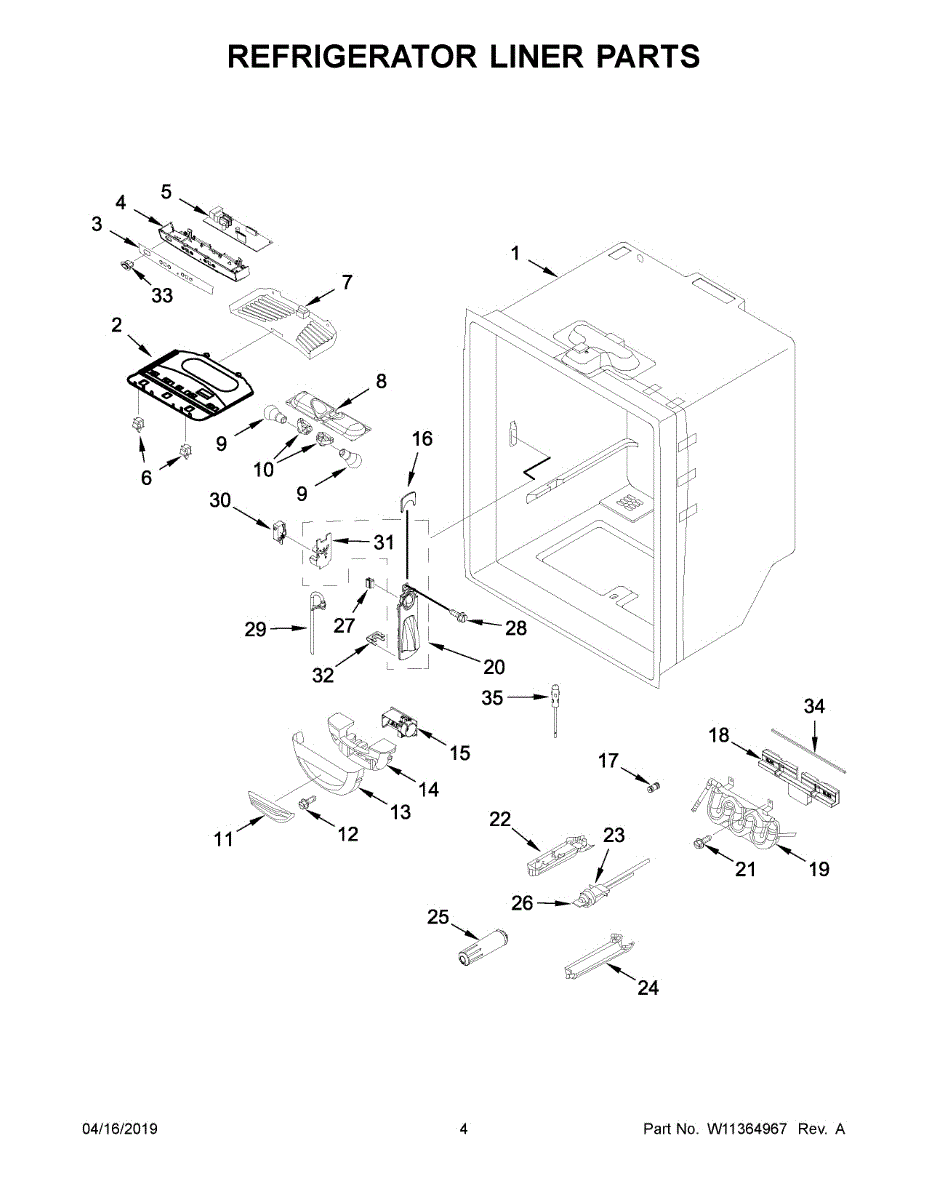 Stores chilled water in the fresh food compartment for steady dispenser flow. Replace if cracked, leaking, or damaged to stop interior leaks.