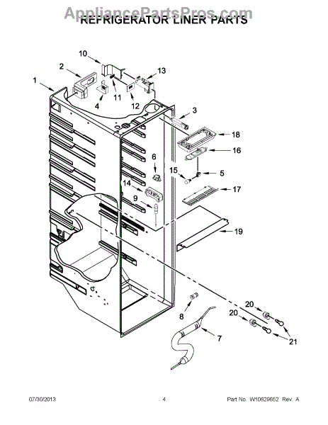 The Air Diffuser is an OEM component for Whirlpool refrigerators. Located inside the refrigerator compartment, it distributes cold air evenly to all storage shelves and ensures balanced temperatures throughout the space. Causes of a bad air diffuser can include cracks in the plastic housing from years of fluctuating temperatures or jammed louvers obstructing optimal circulation patterns. Symptoms of a bad air diffuser include: