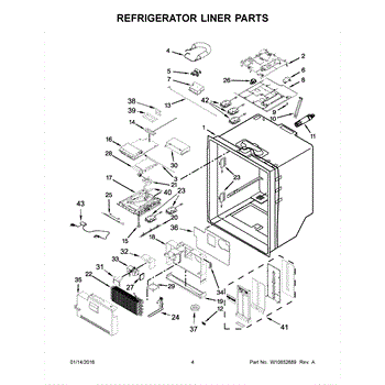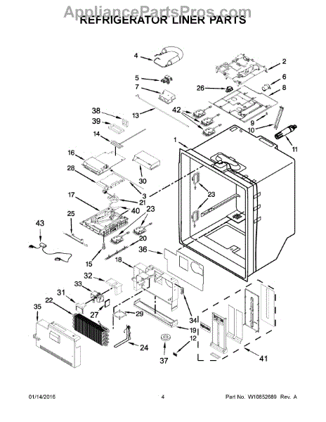 Refrigerator housing component that installs inside the unit. Replace if cracked, broken, or damaged. Essential structural part for proper assembly.
