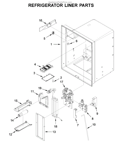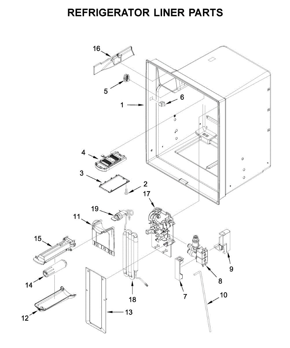 Replacement water reservoir assembly for refrigerators. Includes filter head and tubing. Replace if cracked, leaking, or filter housing is broken or damaged.