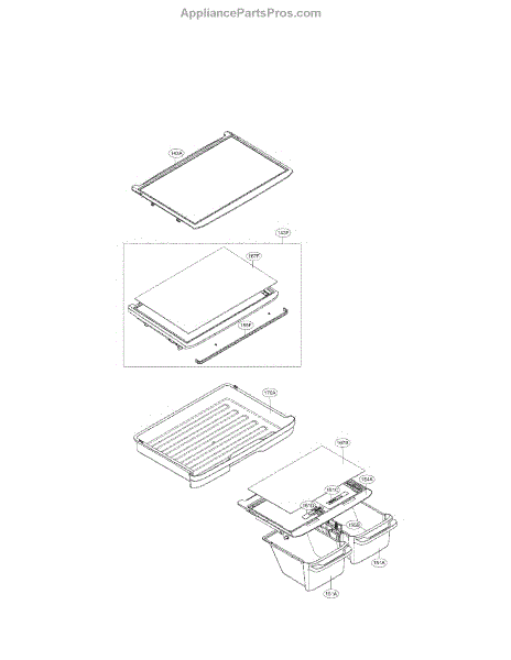 The Shelf Assembly is an OEM component for LG refrigerators. It comprises adjustable glass shelves that fit inside the refrigerator and freezer compartments. These shelves provide flexible storage and organization options for various food items.