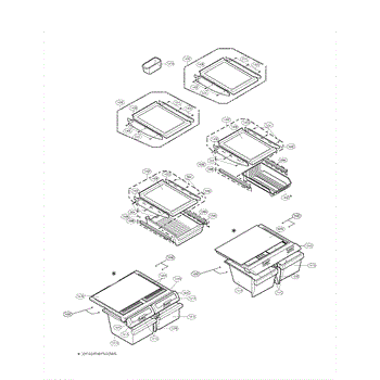 Tempered glass shelf assembly for refrigerators. Replaces cracked, chipped, or missing shelves to restore storage space and keep food organized.