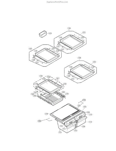 The Shelf Assembly is an OEM part for LG refrigerators. This assembly provides a sturdy and stable surface for storing food items within the refrigerator. It is designed to fit securely into the designated slots, ensuring efficient use of space and easy access to stored goods.