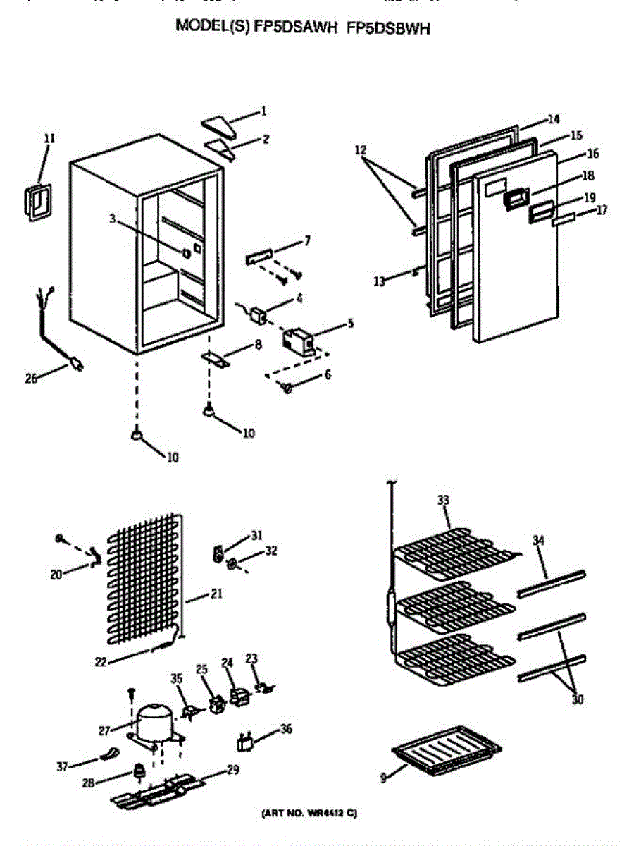 Parts for Ge FP5DSBWH: Refrigerator Parts