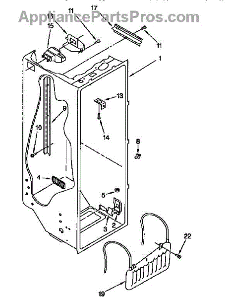 Refrigerator cover installs to protect internal components or provide a finished look. Replace if cracked, broken, or missing for proper coverage.
