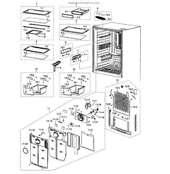 The Upper Shelf Assembly for Bottom-Mount Refrigerator is an essential component for maintaining the functionality and organization of your Samsung refrigerator. Designed specifically for bottom-mount models, this genuine OEM part ensures a perfect fit and seamless integration with your existing appliance. Crafted from durable materials, the assembly provides additional shelving space, allowing you to better organize your groceries and maximize storage capacity. By replacing a cracked, missing, or damaged shelf, you can restore the efficiency of your refrigerator, keeping your food items neatly arranged and easily accessible. Installation is straightforward, making it a convenient solution for DIY repairs. This genuine OEM part not only enhances the interior layout of your refrigerator but also helps in maintaining optimal temperature distribution, ensuring that your perishables stay fresh longer. Trust in the quality and reliability of Samsung to deliver a product that supports the longevity and performance of your bottom-mount refrigerator.