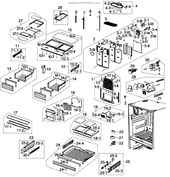 This is a crisper drawer assembly used with refrigerators. It is typically located inside the refrigerator in the lower half of its body. The crisper drawer assembly is a compartment in the refrigerator designed to store fruits and vegetables to keep them fresh longer. The level of humidity in this compartment is different from other areas in the refrigerator. Humidity levels can be adjusted to prevent loss of moisture and allow gases from fruit to escape so it takes longer for them to go bad.If the crisper drawer is cracked or broken, it can no longer function as it should. The humidity level will change and be similar to the rest of the refrigerator. When the drawer is damaged, the crisper drawer assembly should be replaced. This is an easy process that requires no specific tools. Open the refrigerator and pull out the broken drawer. Remove the cover from the top and take the crisper drawer assembly out. Attach the cover to the new replacement part and reinstall.Created for use with refrigerators by Samsung, this crisper drawer assembly is sold as a single item. It is an authentic OEM replacement part that is directly sourced from the manufacturer.