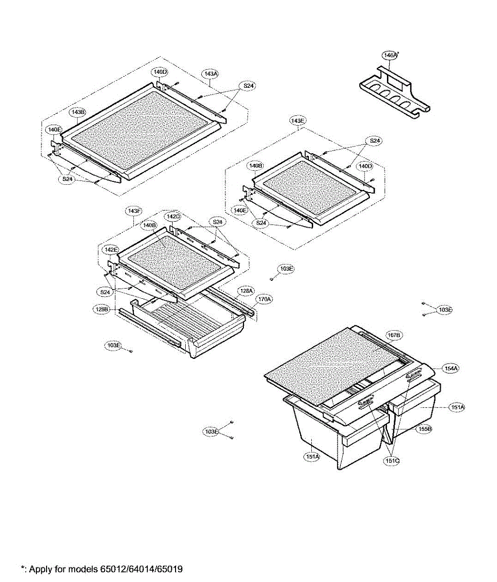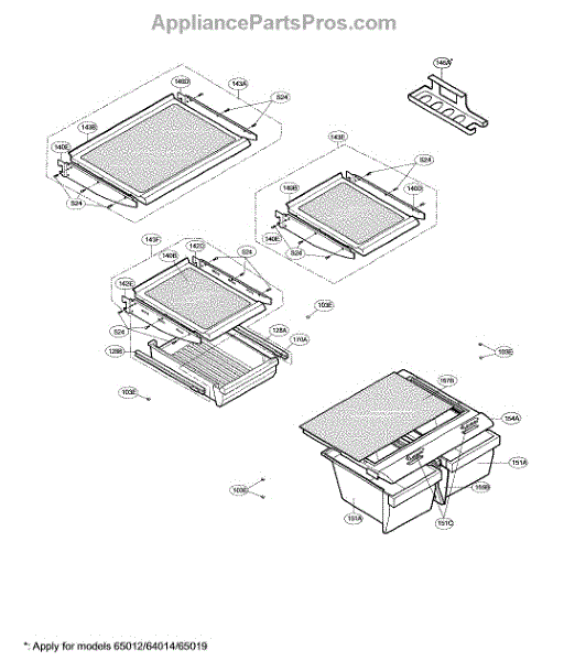 The Shelf Assembly is an OEM part for LG refrigerators. This assembly provides a sturdy and stable surface for storing food items within the refrigerator. It is designed to fit securely into the designated slots, ensuring efficient use of space and easy access to stored goods.