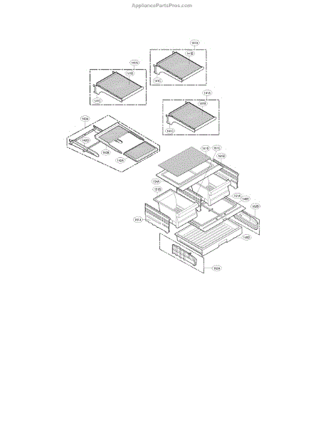 Refrigerator shelf assembly that replaces a damaged or missing internal shelf, restoring flat, secure storage for food and containers. Helps keep items level and organized inside the fridge. What it does