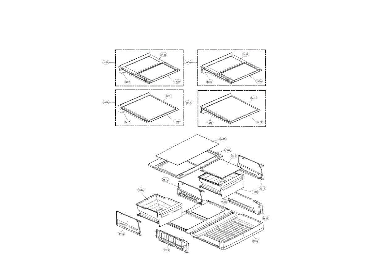 • Forms the shelf/cover above a refrigerator drawer or tray