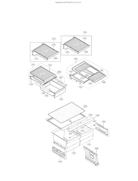 This shelf assembly replaces a damaged or missing refrigerator shelf to restore usable storage space and keep food organized. It provides a stable surface for holding containers and helps maintain proper airflow inside the compartment. What it does:
