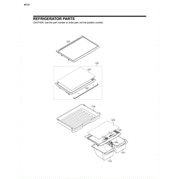 The Shelf Assembly is an OEM component for LG refrigerators. It comprises adjustable glass shelves that fit inside the refrigerator and freezer compartments. These shelves provide flexible storage and organization options for various food items.